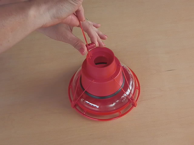 - For bowl-type feeders, remove the hanging hook; for bottle-type feeders, remove bottle.